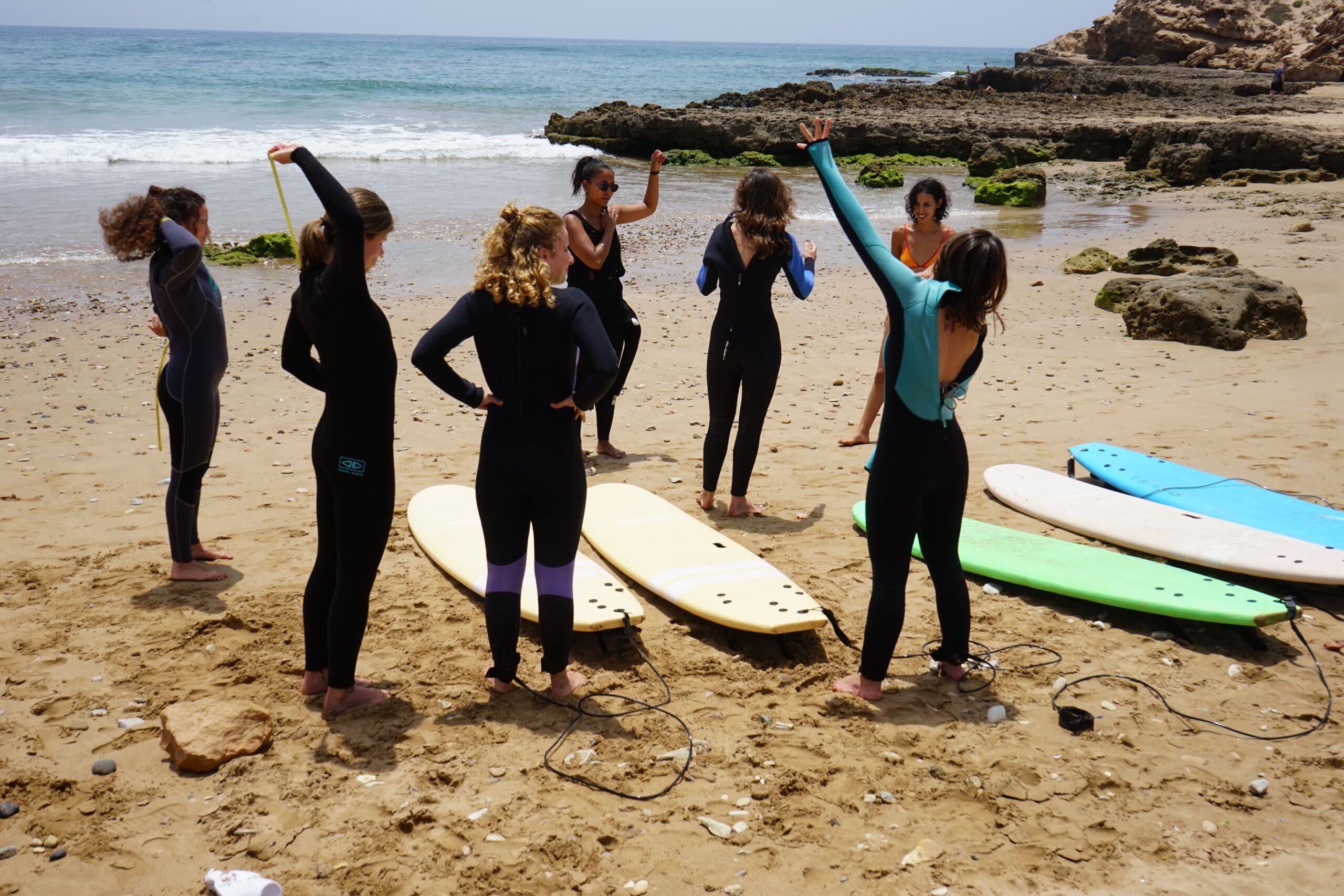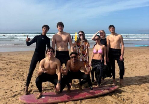 Our 4-day beginner surf coaching program is ideal for travelers seeking to experience the thrill of surfing while enjoying the Moroccan coast. With daily surf lessons, theory sessions, and delicious Moroccan food, you’ll quickly progress from your first pop-up to riding your first wave.